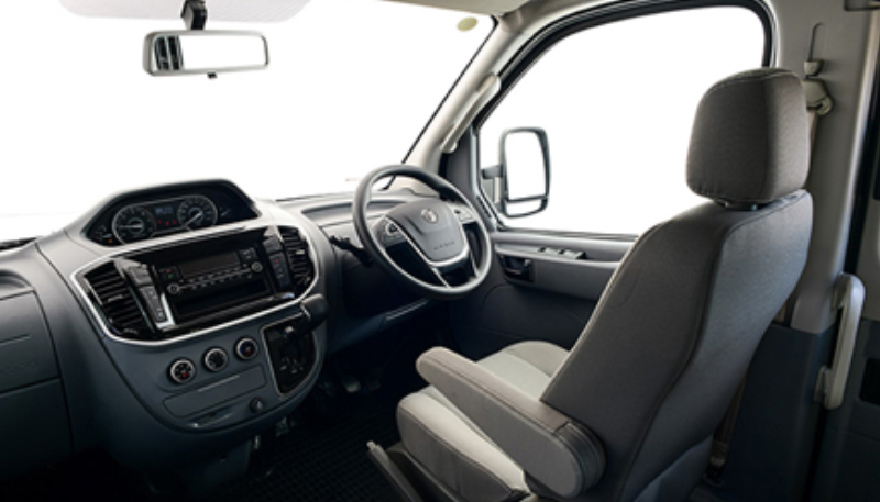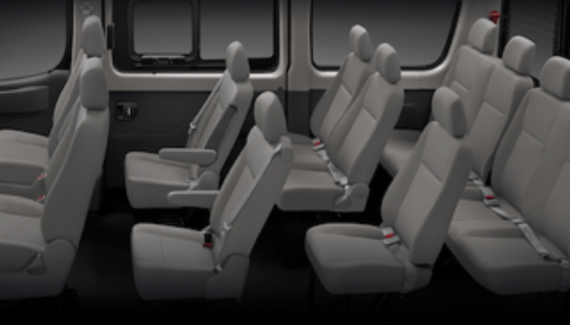 สัดส่วนของการแบ่งที่นั่งเป็นแบบ 4 แถว 7 ที่นั่ง มาพร้อมเข็มขัดนิรภัยแบบ ELR ที่นั่งแถว 1,2 และ NR ที่แถว 3,4  เพิ่มความสบายในการขับขี่กับเบาะที่นั่งของคนขับสามารถปรับได้ 8 ทิศทาง คุมโทนเรียบเท่จากเบาะผ้าสีเทา ทางด้านคอนโซนมีจอแสดงผลอัจฉริยะ Muti-Function Display เครื่องเสียงวิทยุ Mp3 รองรับการเชื่อมต่อแบบ Bluetooth และ ช่องเชื่อมต่อ USB