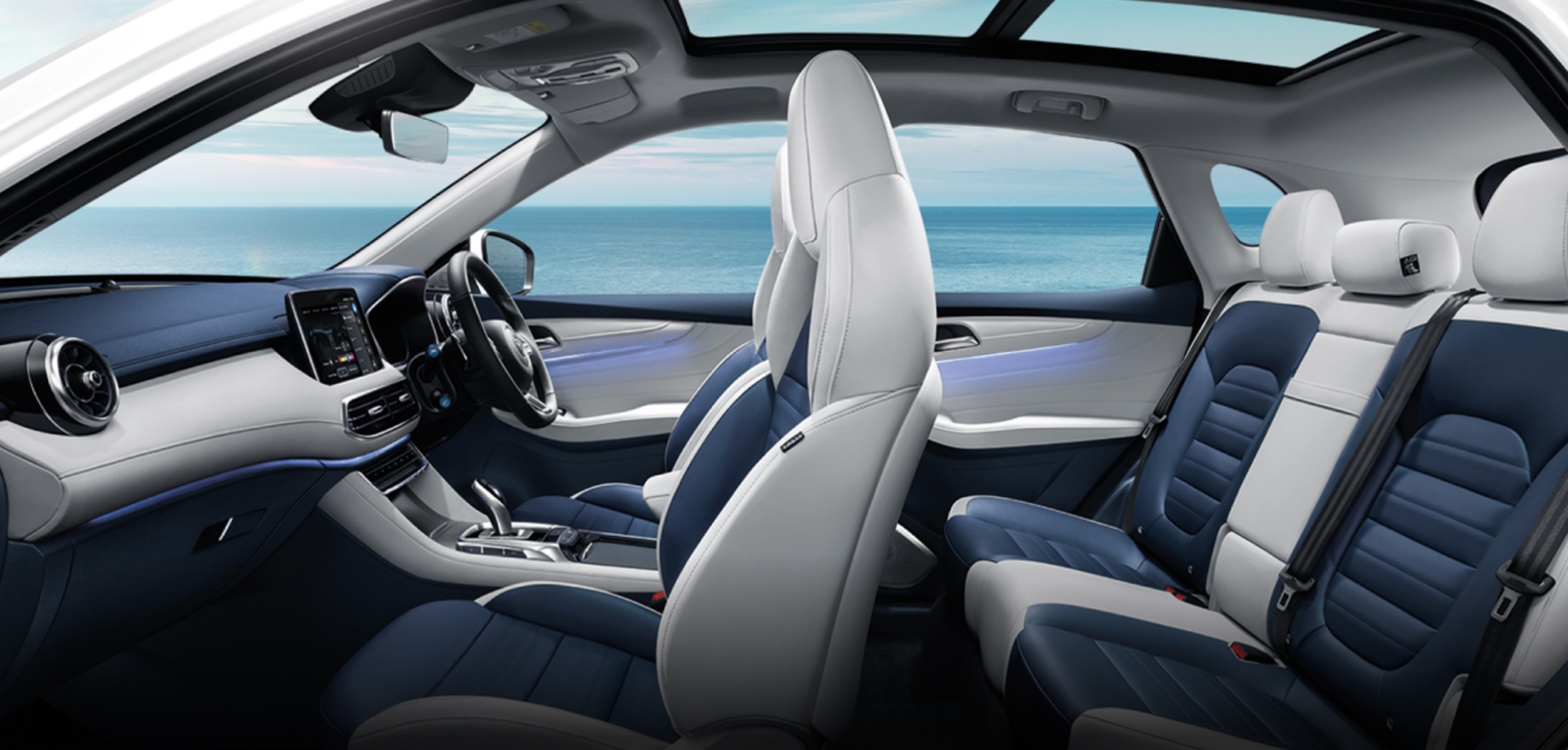 ภายในห้องโดยสารโดดเด่นด้วยสี 2-TONE MONACO BLUE